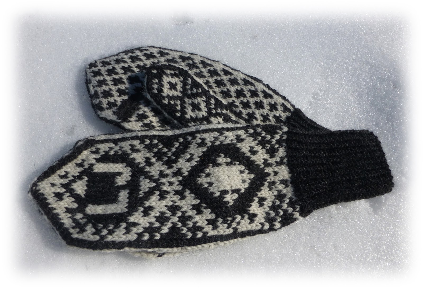 Min gudfar fyller 70 år. Han er en jeger med elghund. Da måtte det bli disse vottene hentet fra boka "Selbuvotten" Terry Shea. Strikket i alpakka fra Sandnes